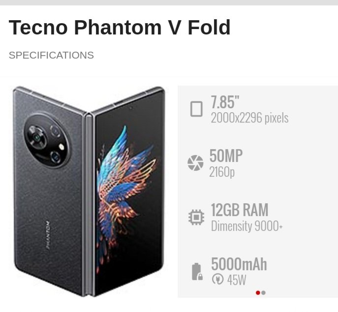 The Tecno Phantom V Fold 5G is a cutting-edge smartphone that offers a range of impressive features. Here are some of the key highlights: